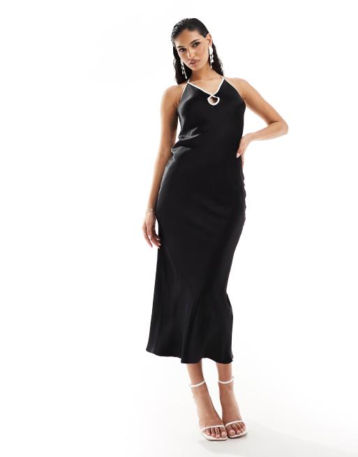ASOS DESIGN – Czarna satynowa sukienka maxi z kontrastowym wykończeniem