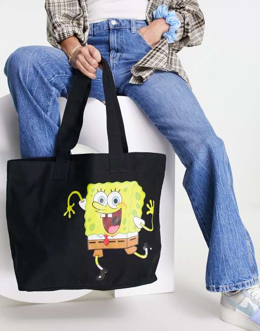 ASOS DESIGN – Czarna shopperka oversize z nadrukiem SpongeBoba