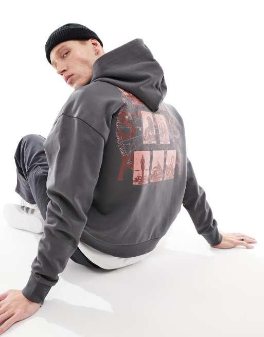 ASOS DESIGN – Czarna sprana bluza z kapturem oversize z nadrukiem