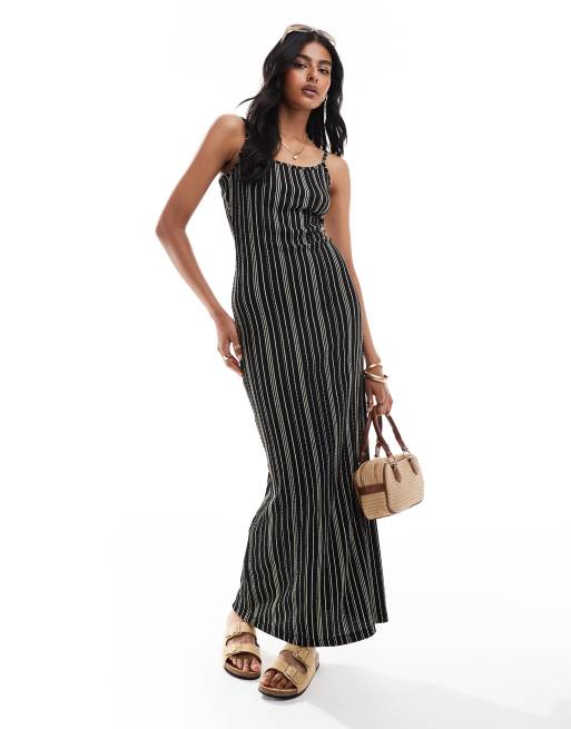 ASOS DESIGN – Czarna sukienka maxi na ramiączkach z paseczkami na plecach w paski