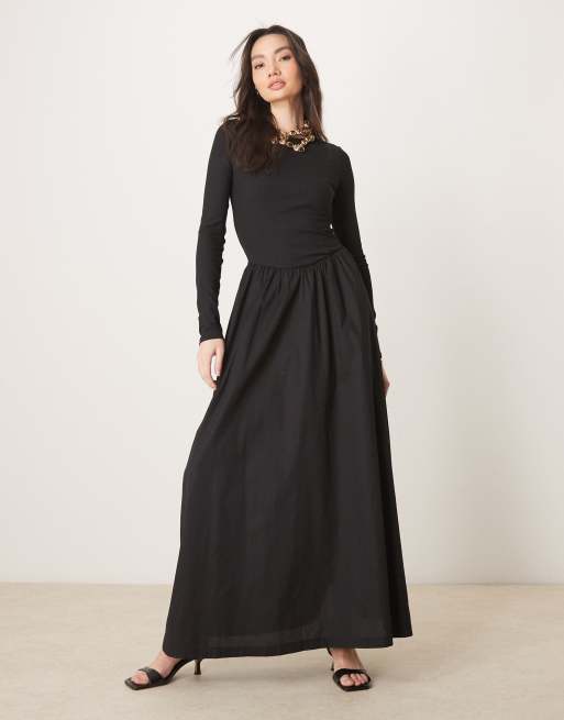 ASOS DESIGN – Czarna sukienka maxi z łączonych materiałów z prążkowaną wstawką