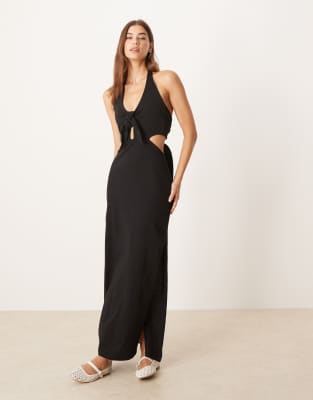 ASOS DESIGN – Czarna sukienka maxi z dekoltem typu halter i kokardą