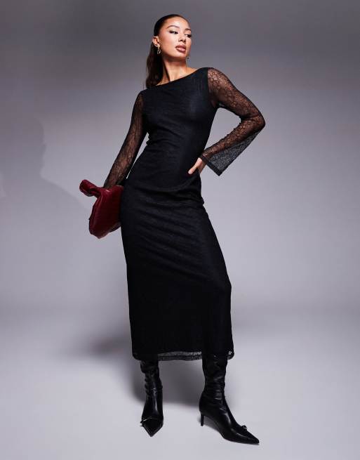 ASOS DESIGN – Czarna sukienka midaxi z koronkowymi rozkloszowanymi rękawami