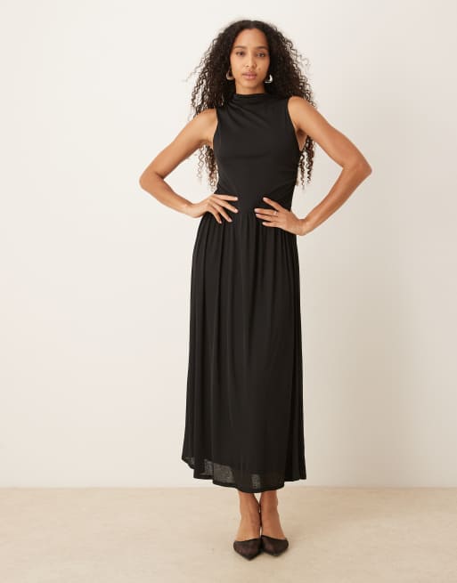 ASOS DESIGN – Czarna sukienka midi z asymetrycznymi rękawami i obniżonym stanem