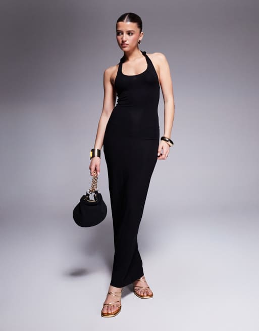 ASOS DESIGN – Czarna sukienka midi z dekoltem w łódkę z marszczeniem z tyłu
