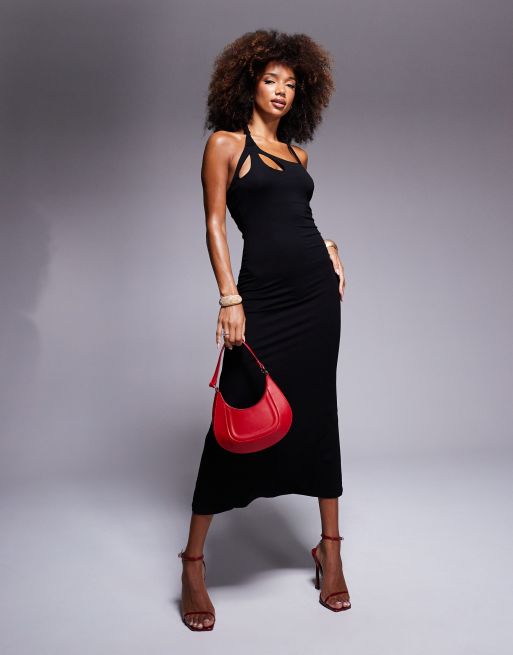 ASOS DESIGN – Czarna sukienka midi z skręconym dekoltem z wycięciami