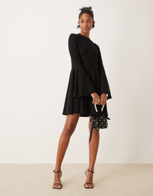 ASOS DESIGN – Czarna sukienka mini w stylu skater z rozkloszowanymi rękawami