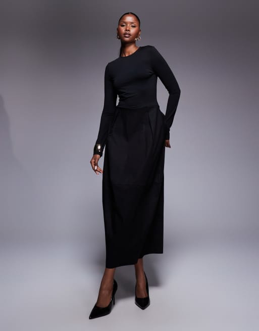 ASOS DESIGN – Czarna sukienka mini z długimi rękawami i spódnicą typu kokon