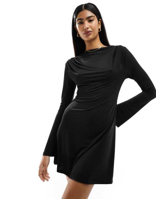 ASOS DESIGN – Czarna sukienka mini z zabudowanym dekoltem i rozszerzanymi rękawami