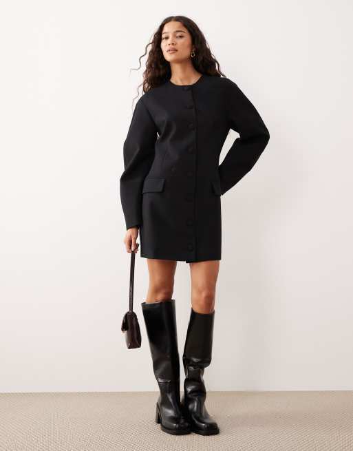 ASOS DESIGN – Czarna sukienka żakietowa z rękawami typu kokon