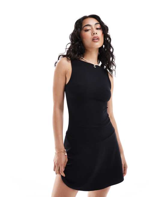 ASOS DESIGN – Czarna sukienka ze spódnicospodniami, prostym dekoltem i odkrytymi plecami