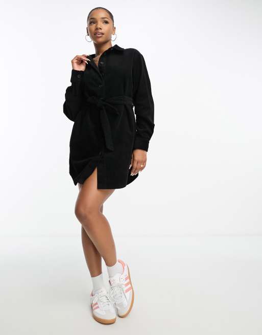 ASOS DESIGN – Czarna sztruksowa sukienka koszulowa z paskiem