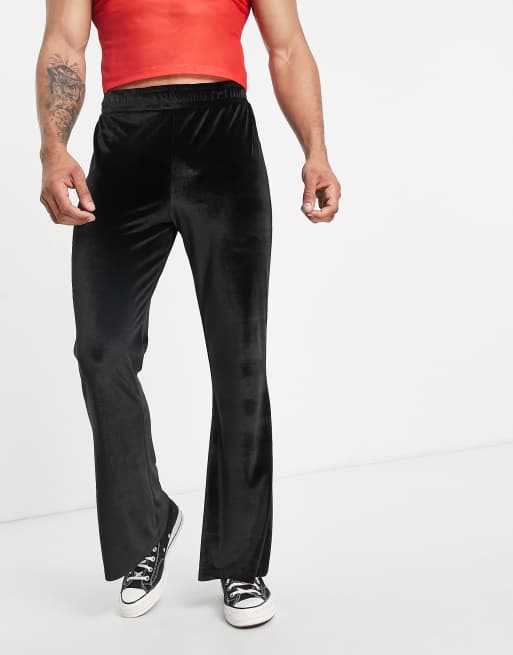 ASOS DESIGN – Czarne aksamitne spodnie z rozszerzanymi nogawkami o obcisłym kroju