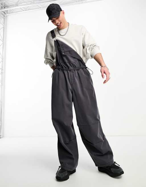 ASOS DESIGN – Czarne bardzo luźne ogrodniczki z efektem sprania