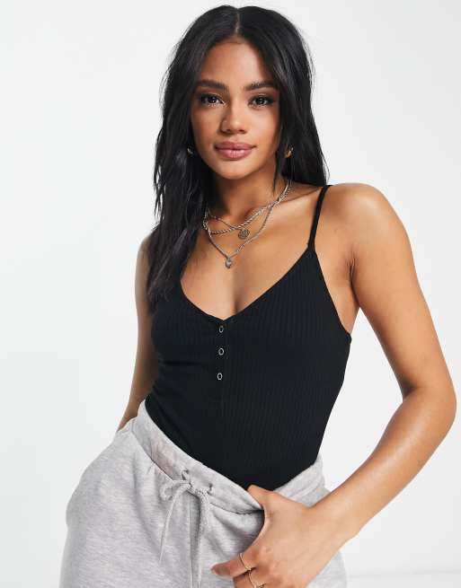 ASOS DESIGN – Czarne body na ramiączkach zapinane z przodu na zatrzaski