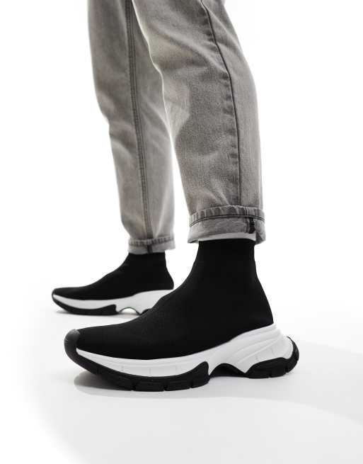 ASOS DESIGN – Czarne buty sportowe na masywnej podeszwie z dzianinową cholewką