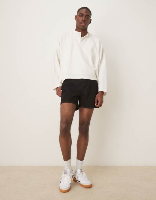 ASOS DESIGN – Czarne dopasowane jeansowe szorty o krótkim fasonie z zakładkami