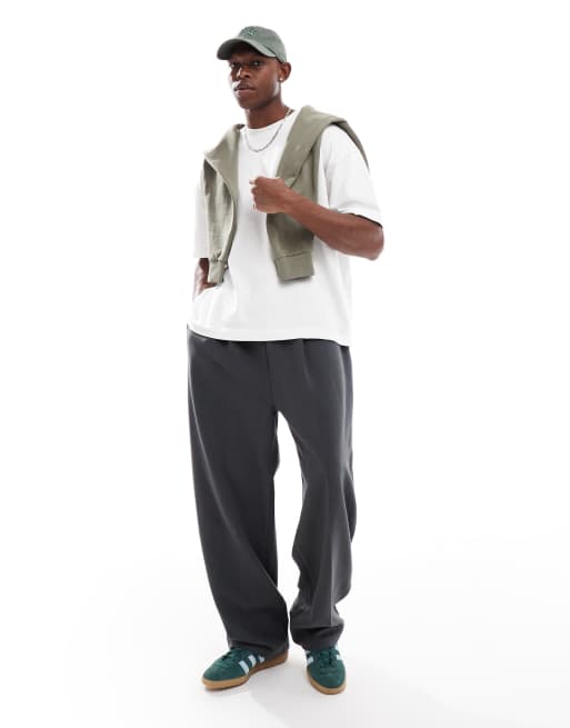 ASOS DESIGN – Czarne dżersejowe joggersy z szerokimi nogawkami i zaszewkami z diagonalu z efektem sprania