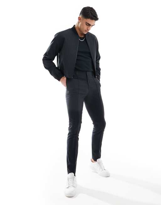 ASOS DESIGN – Czarne eleganckie spodnie o obcisłym kroju w prążki – Część zestawu