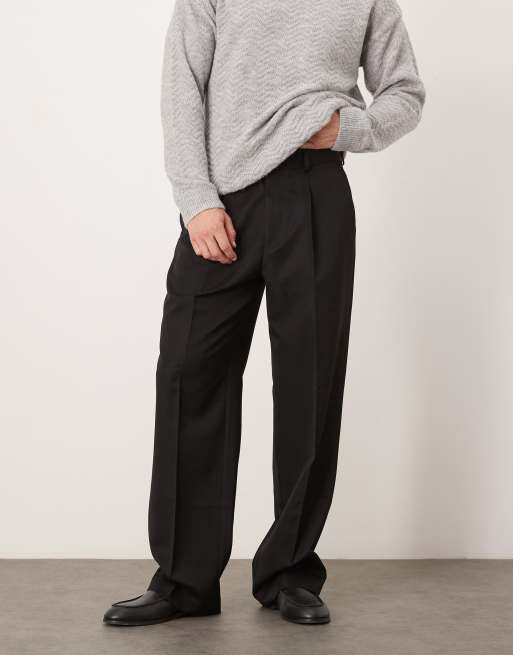 ASOS DESIGN – Czarne eleganckie spodnie z szerokimi nogawkami z zakładkami
