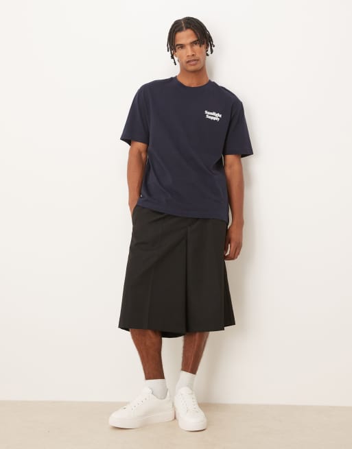 ASOS DESIGN – Czarne eleganckie szorty bermudy oversize z zakładkami z przodu
