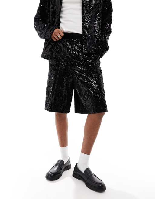 ASOS DESIGN – Czarne eleganckie szorty cekinowe o szerokim kroju, część zestawu