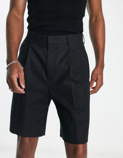 ASOS DESIGN – Czarne eleganckie szorty z mieszanki lnu o szerokim kroju