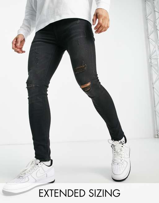 ASOS DESIGN – Czarne jeansy o bardzo obcisłym kroju z power stretchem, efektem sprania i rozdarciami