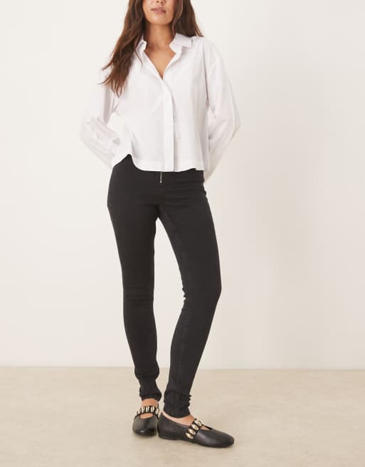 ASOS DESIGN – Czarne jeansy o obcisłym kroju z bardzo podwyższonym stanem i zamkiem z przodu