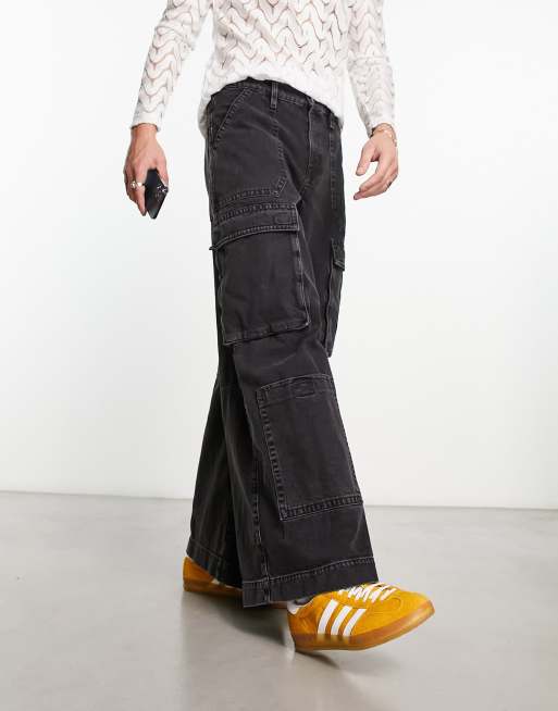 ASOS DESIGN – Czarne jeansy z bardzo szerokimi nogawkami z kieszeniami i efektem sprania