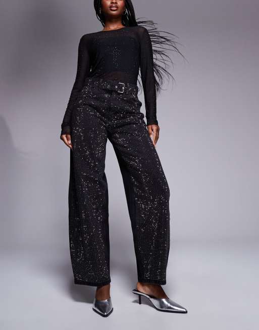 ASOS DESIGN – Czarne jeansy z baryłkowymi nogawkami i zdobieniem z dżetów