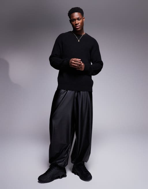 ASOS DESIGN – Czarne joggersy baggy o balonowym kroju z imitacji skóry