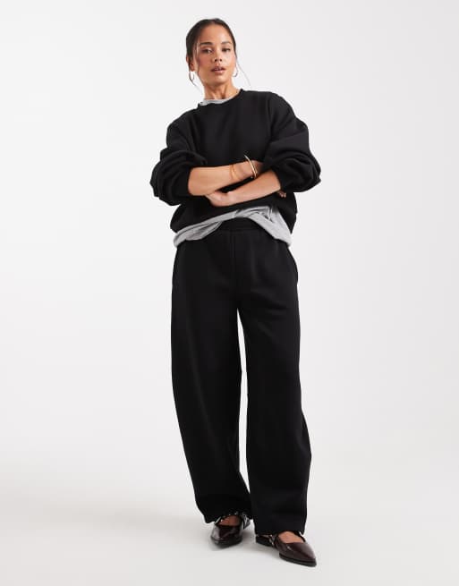 ASOS DESIGN – Czarne joggersy z szerokimi nogawkami i szczotkowanym wykończeniem od spodu