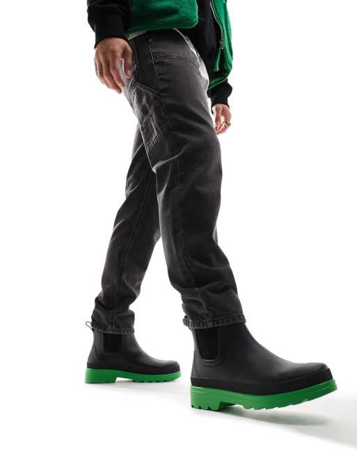 ASOS DESIGN – Czarne kalosze z kontrastową zieloną podeszwą