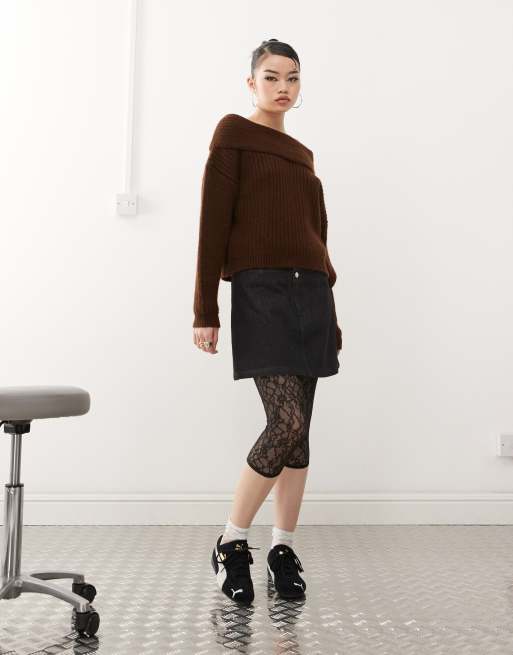 ASOS DESIGN – Czarne koronkowe legginsy capri