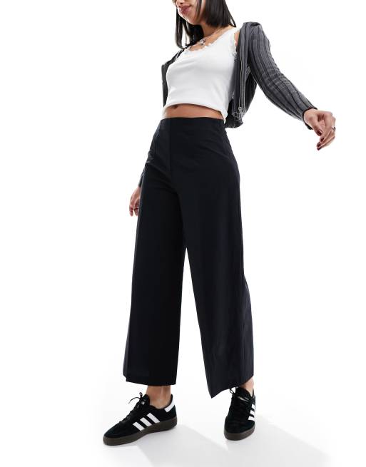 ASOS DESIGN – Czarne lniane eleganckie spodnie kuloty