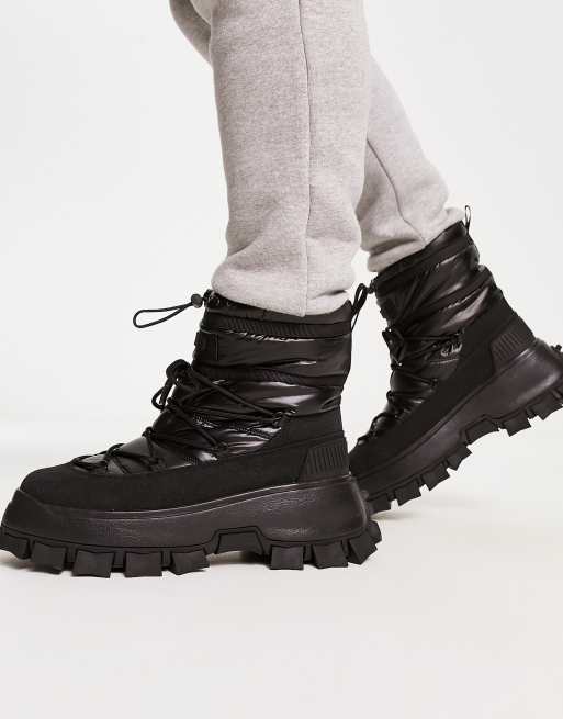 ASOS DESIGN – Czarne lśniące sztyblety z nylonu na masywnej podeszwie z ozdobnym sznurowaniem