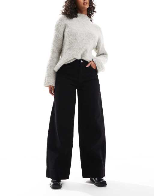ASOS DESIGN – Czarne luźne jeansy z szerokimi mankietami i efektem sprania