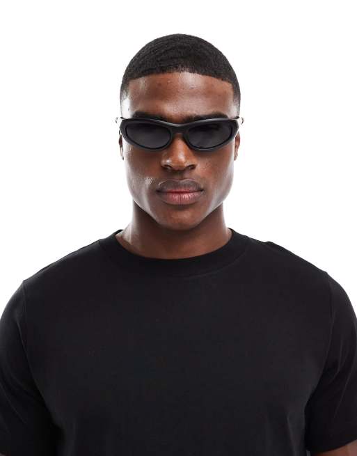 ASOS DESIGN – Czarne matowe festiwalowe okulary przeciwsłoneczne racer z czarnymi soczewkami