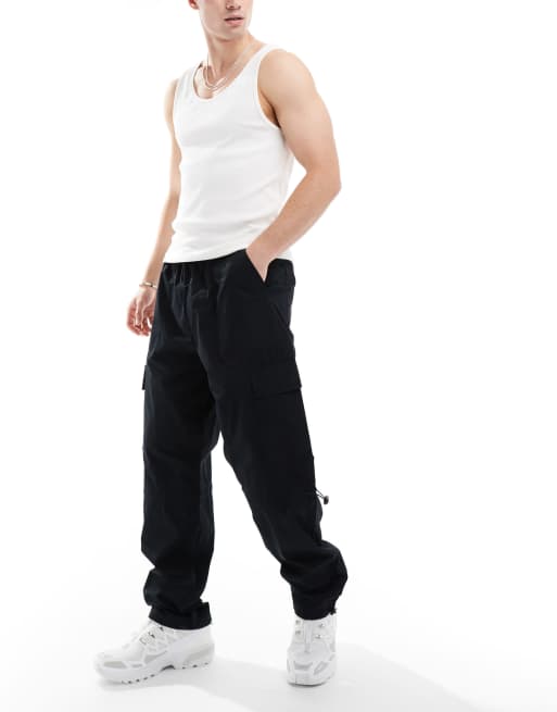 ASOS DESIGN – Czarne popelinowe spodnie bojówki z elastyczną talią