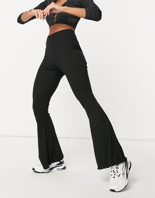 ASOS DESIGN – Czarne prążkowane dzwony z pofałdowanym wykończeniem