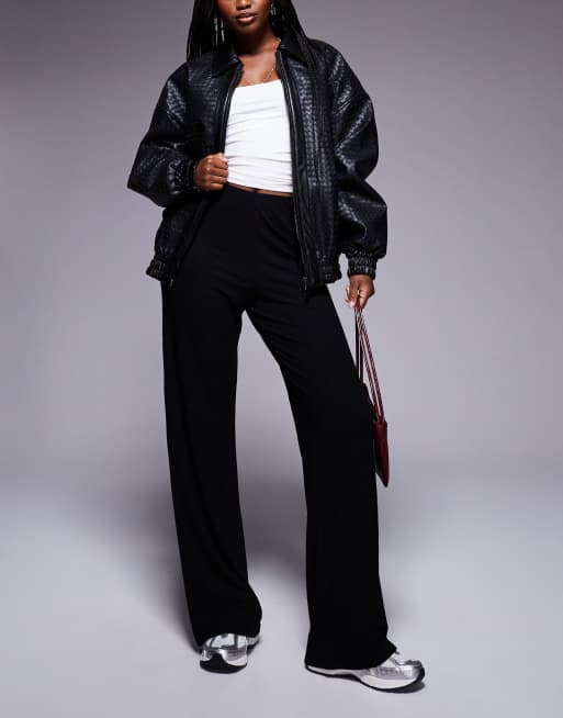 ASOS DESIGN – Czarne prążkowane spodnie z szerokimi nogawkami