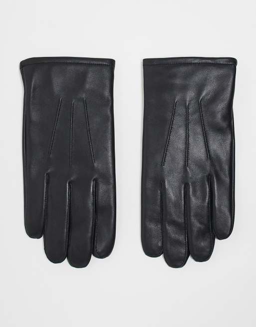 ASOS DESIGN – Czarne skórzane rękawiczki dostosowane do ekranów dotykowych