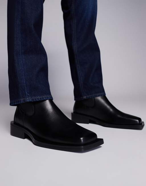 ASOS DESIGN – Czarne skórzane sztyblety na obcasie z kwadratowymi noskami