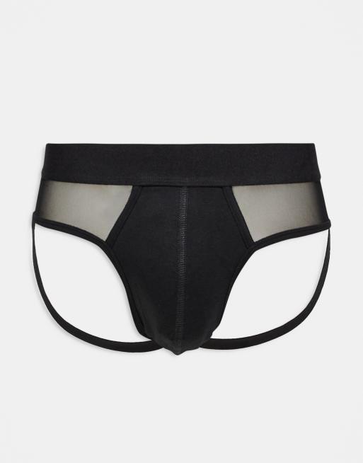 ASOS DESIGN – Czarne slipy typu jock strap ze wstawkami z siateczki