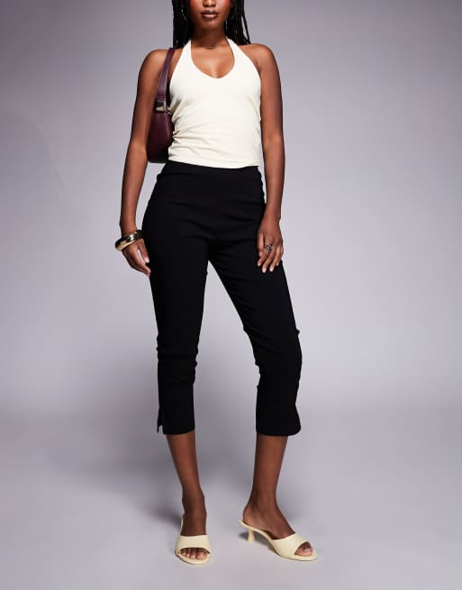 ASOS DESIGN – Czarne spodnie capri o wydłużonym fasonie z rozcięciami na dole