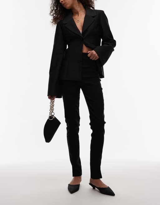 ASOS DESIGN – Czarne spodnie cygaretki z bengaliny z rozcięciami po bokach
