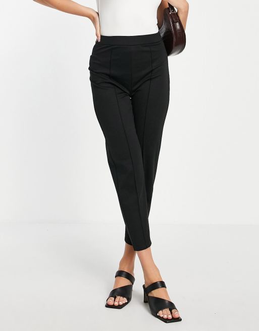 ASOS DESIGN – Czarne spodnie nad kostkę z tkaniny ponte z zaszewkami