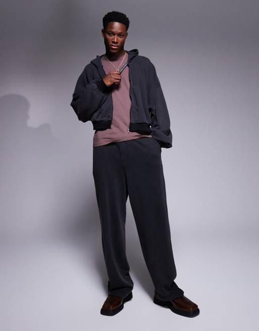 ASOS DESIGN – Czarne sprane bardzo obszerne joggersy z podwiniętymi nogawkami