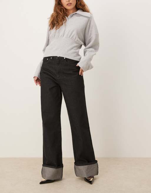 ASOS DESIGN – Czarne sprane jeansy z wywiniętymi nogawkami